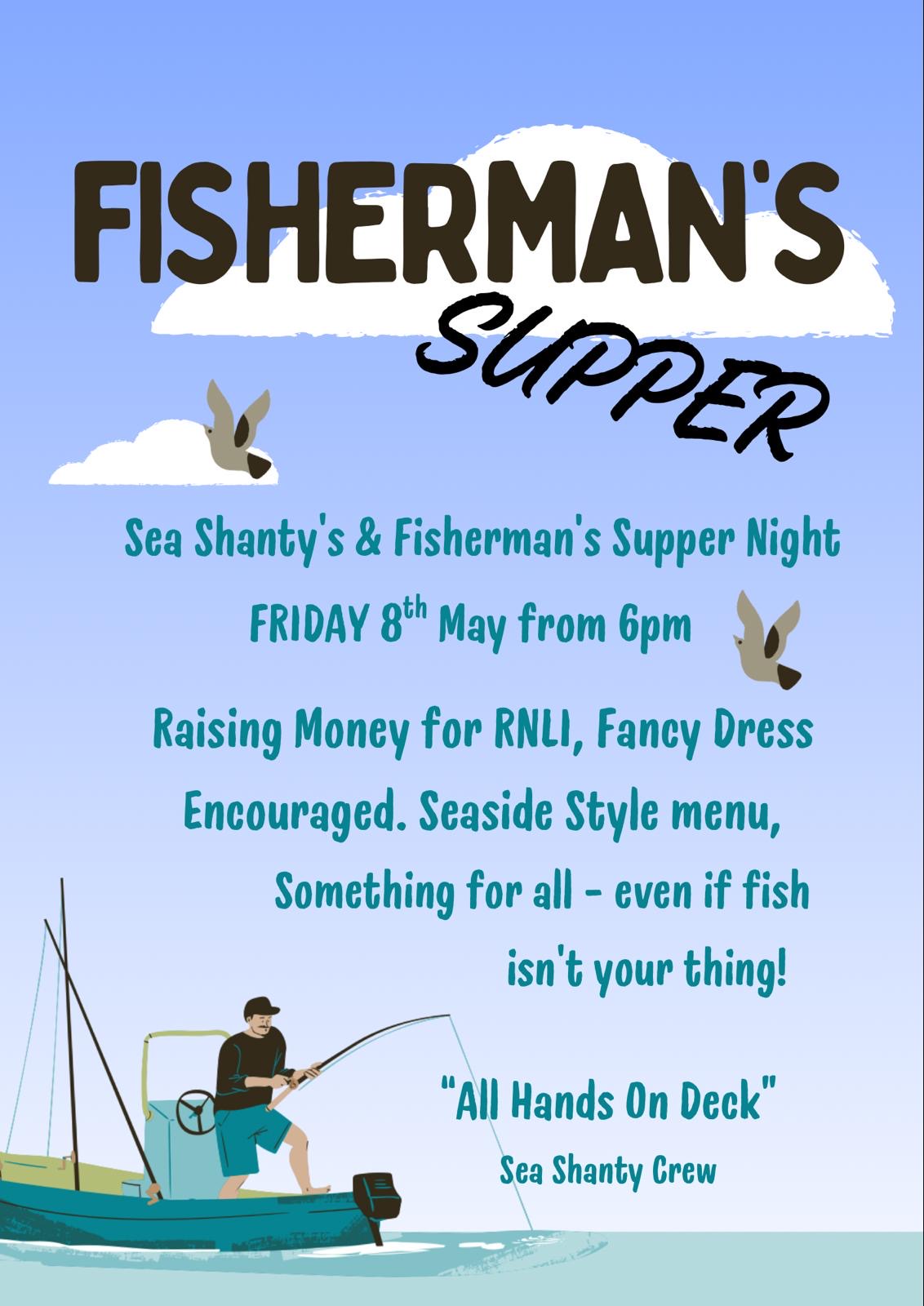 We're holding our 2nd 'Fisherman's Supper' with live entertainment from "All Hands On Deck" sea shanty crew. Raising money from the RNLI. It will be an evening of great food and singing a mix of traditional & modern sea shanties. Fancy dress is encouraged but not necessary. From 6pm.